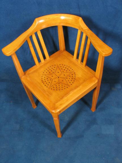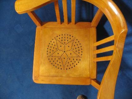 Detailgetreue Ornamentarbeit in Sternform auf der Sitzfläche; sehr gut erhalten - ein Klassiker der Epoche